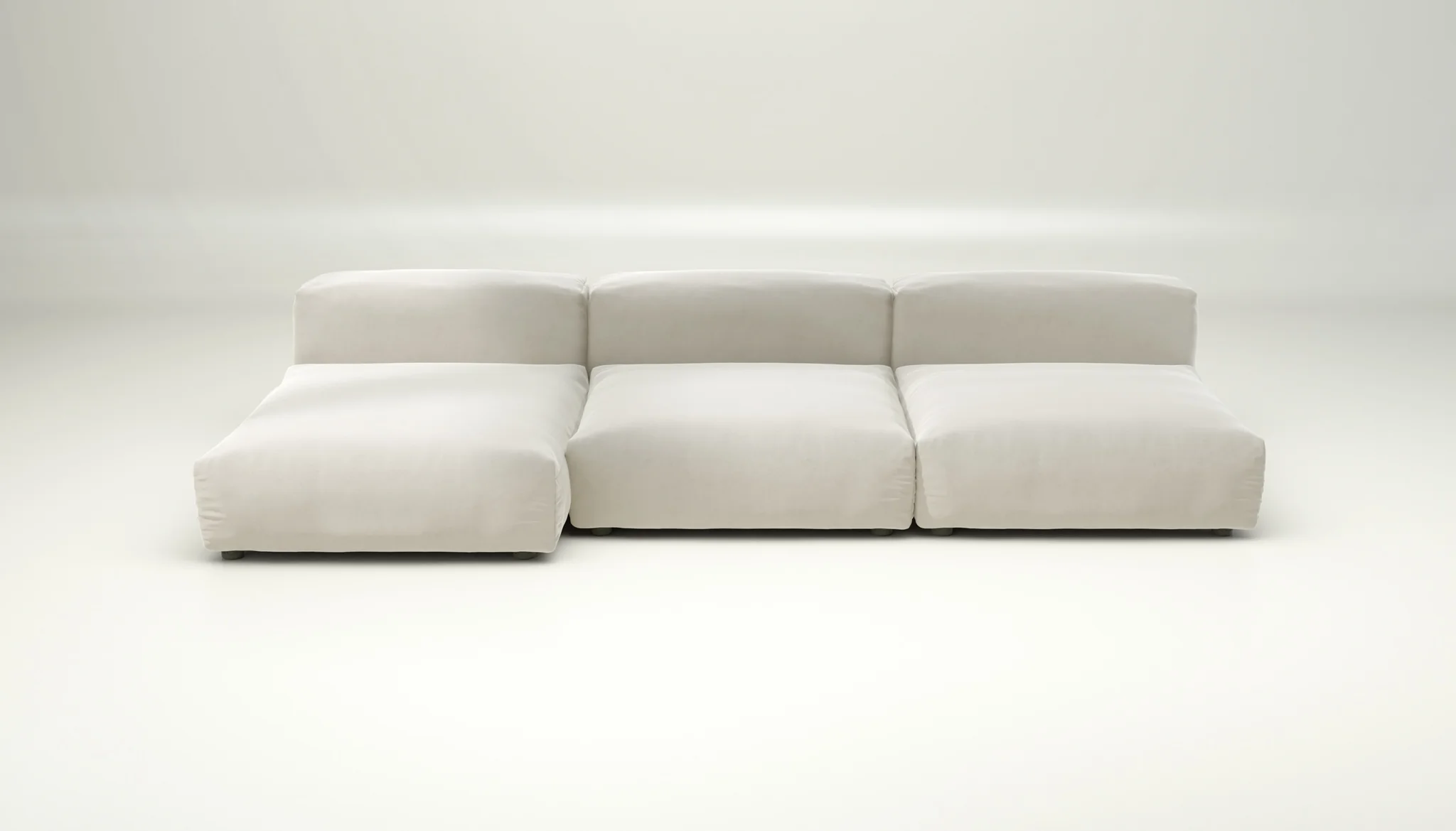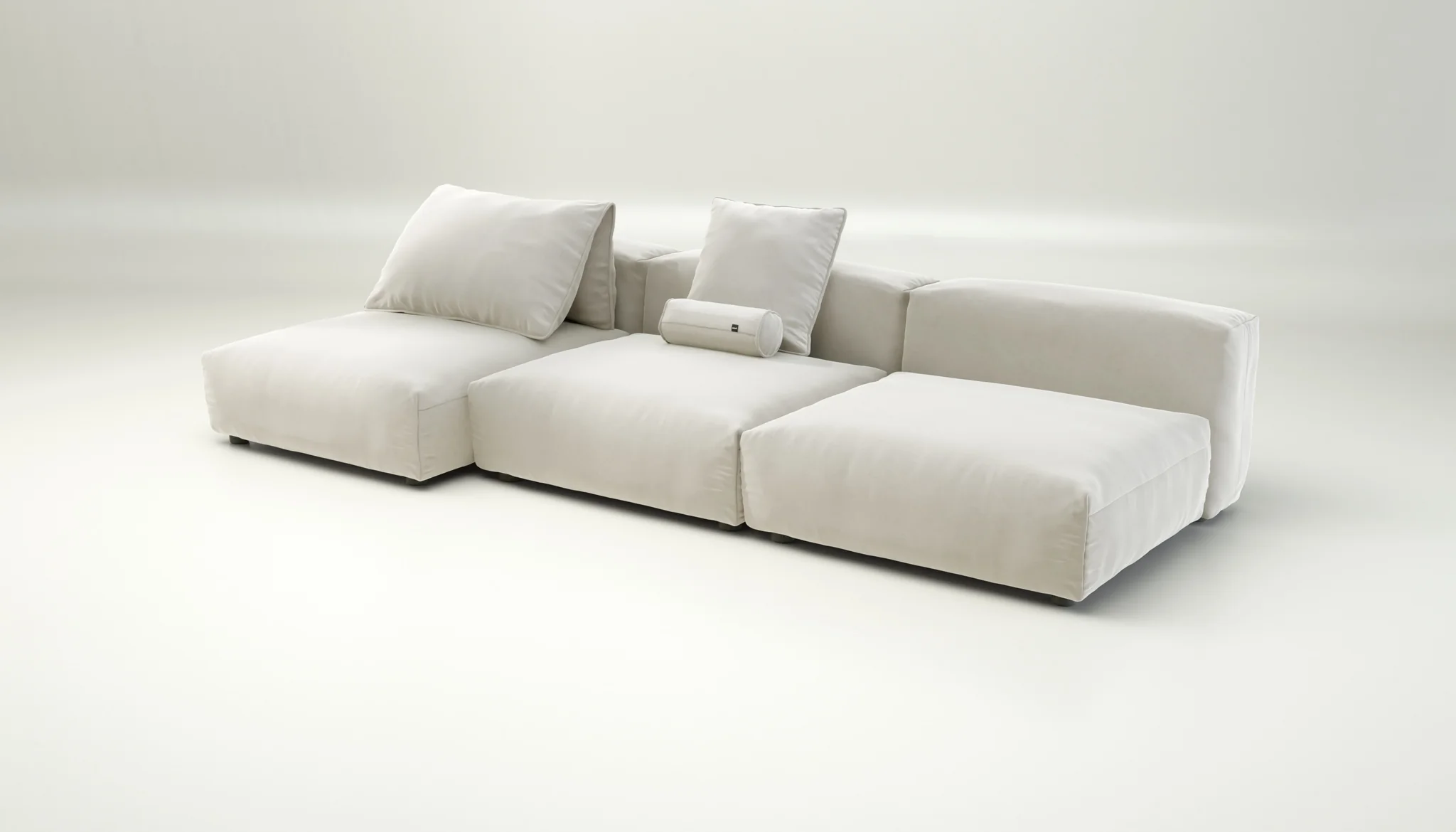 the set consists of six modules – three seat modules and three side modules – that can be easily rearranged any time. keep it clean and linear, stagger the arrangement for movement or extend one side to deepen the sense of relaxation.